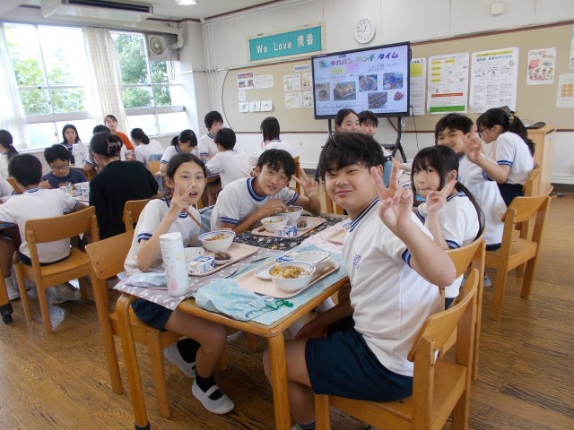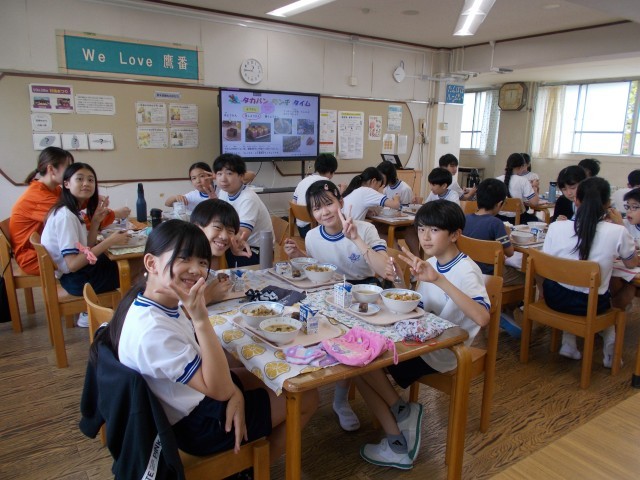今日は6年2組がランチルームに来てくれました。世界食糧デーの話と給食の残量についての話をすると、残さず頑張って食べてくれる子がたくさんいました。