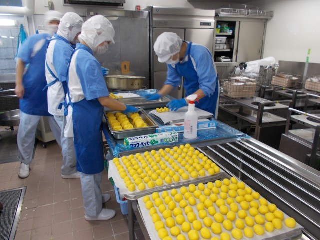 今日はお月見なので、里芋をごはんに炊き込んだり、かぼちゃを入れた月見団子を作ったりしました。ごはんには油揚げとニンジン、しめじを煮たもの、枝豆、里芋を入れました。里芋の食感がとてもおいしくできましたが、「里芋は苦手」「しめじが苦手」という子がたくさんいました。シシャモは白ゴマと黒ゴマの2種類をまぶして焼きました。香ばしくておいしくできましたが、こちらも「シシャモが苦手」という子がたくさんいました。月見団子は、白玉粉に蒸したかぼちゃと米粉、砂糖、水を入れてよくこね、丸めてゆでてからきなこをまぶしました。きなこをまぶしてしまったので色がわかりにくいですが、とてもきれいな黄色いお団子になりました。全員分で1300個のおだんごを、調理師さんが丁寧に丸めてくれました。