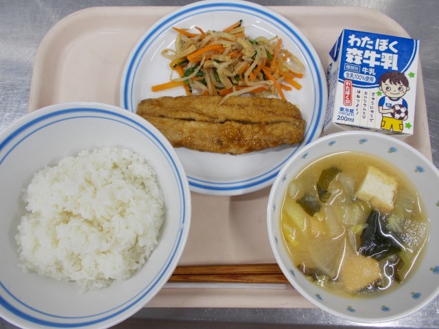 10月14日 ごはん 具沢山みそしる サンマのかば焼き 高野あえ 牛乳