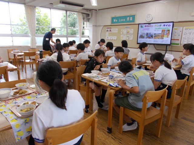 今日は5年1組がランチルームに来てくれました。魚をつかった和食は苦手な子が多いですが、今日は世界食糧デーと給食の残量についての話をしたこともあり、よく食べてくれました。
