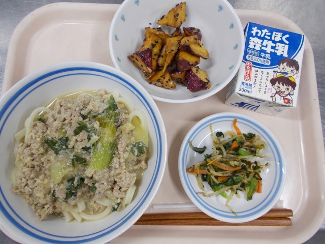 10月28日 豆乳タンタンうどん 磯香和え 大学芋 牛乳