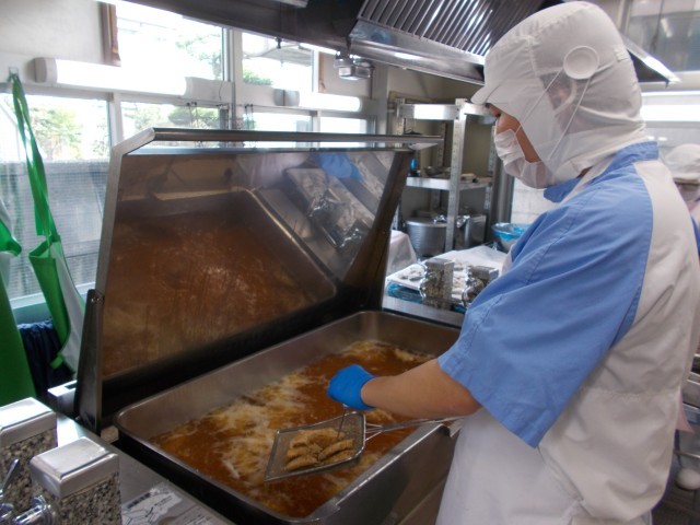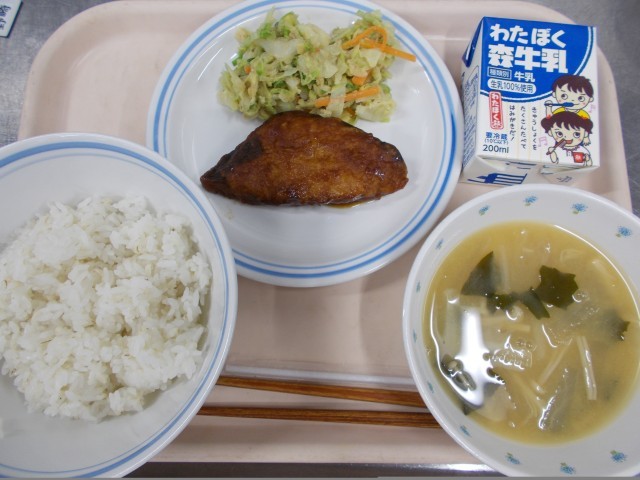 今日は一汁二菜の和食のメニューでした。カツオは油で揚げてから、ぴりからのたれを絡めました。しっかりした味だったのと骨がないので食べやすく、子どもたちもよく食べてくれていました。みそ汁は大根とえのきとわかめを入れました。だしの味がしっかりしていて、「みそ汁がおいしかった。おかわりしたよ。」と声をかけてくれる子もいました。サラダは、白練りごまと白すりごまを入れた特製ドレッシングあえました。