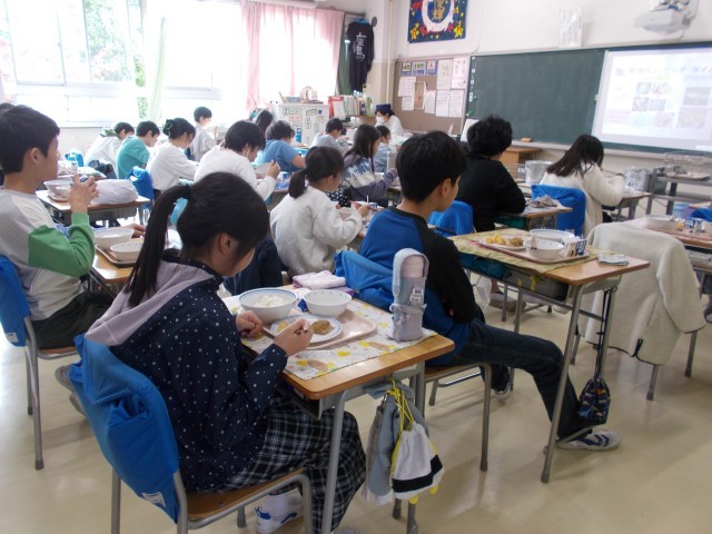 今日は栃木県の料理を作りました。かんぴょうの生産量全国1位を誇る栃木県では、かんぴょうをいろいろな料理に使います。卵とじ汁は、人が集まるときやお祝いの時に食べられるそうです。いもフライはジャガイモにパン粉をつけて油で揚げたものです。今日は油で揚げてから、軽く塩を振りました。もろは「さめ」のことで、今日はみそやネギ、すりごまを合わせたタレをのせました。しっかりした味だったので、白いご飯によく合いました。「芋が苦手だけど、今日は食べられた。」という子がいたり、「今日もk名食しました!」と報告してくれる子がいたりして、とても嬉しくなりました。