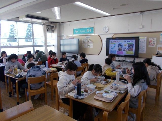 今日は5年3組がランチルームに来てくれました。来週から2月なので、2月の給食目標についてお話をしました。配り切れなかった給食もみんなで一口ずつおかわりをして食べるなど、みんなで協力ができているクラスで素晴らしいと思いました。