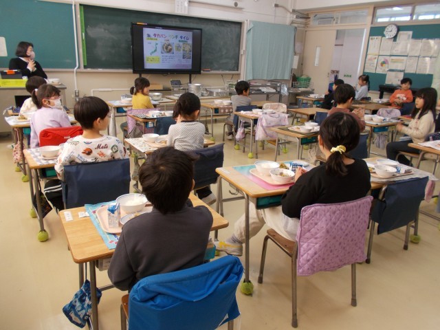 2月6日 ごはん いも煮 鮭の西京焼き ごまあえ 牛乳