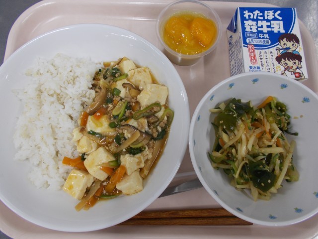 3月5日 ごはん 四川豆腐 ジャガイモの中華風サラダ マンゴープリン 牛乳