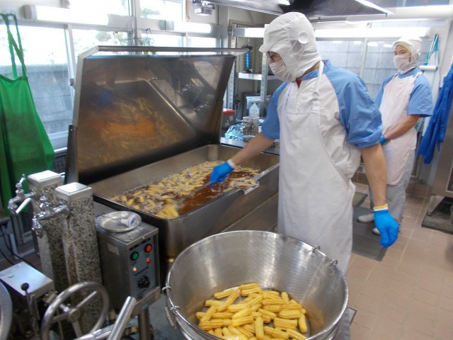 今日はスペイン料理特集でした。パエリアはスペインのバレンシア地方で生まれた料理です。今日はヤリイカとエビ、鶏肉、ムール貝を入れたパエリアを作りました。サフランの色がきれいに出たパエリアになりました。ソパデアホのソパはスープ、アホはにんにくという意味で、ニンニクのスープです。卵とパン粉を入れて、ふわふわのスープになりました。デザートはチュロスです。強力粉とたまご、豆乳、バターで生地を作り、棒状に絞って、油で揚げシナモンシュガーをまぶしました。