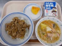 今日はいろいろな具が入ったうま煮をごはんにのせました。甘辛い味付けでおいしかったですが、クラスによっては残ってしまうところもありました。みそ汁は大根とえのきだけ、油揚げのシンプルなみそ汁にしました。和風のスイートポテトには、たっぷりのごまを入れたので、香ばしくておいしかったです。