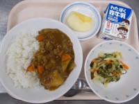 今日はいわしを油で揚げて、甘辛いたれをからめたかば焼きを作りました。ごはんにもたれの一部を合わせて、おいしく食べることができるようにしました。小骨が多く、なかなか手を付けることができない子もいました。呉汁は大豆をすりつぶした「呉」を入れた具だくさんの汁物です。きゅうりとキャベツはさっとゆでて塩を振って水分を出し、ゆかりを合わせました。