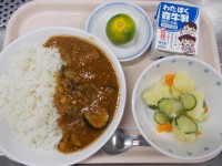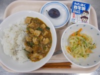 9月20日 ナスとひき肉のカレー ポテトのフレンチサラダ 早生みかん 牛乳