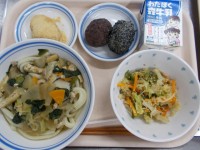 10月7日 肉汁うどん みそポテト おひたし 牛乳