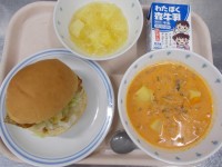 9月26日 マヒマヒサンド トマトクリームスープ パインジュレ 牛乳