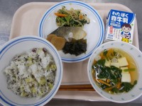 10月9日 栗おこわ 呉汁 さわらの西京焼き ごまあえ 牛乳