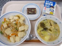 10月2日 肉豆腐丼 具沢山みそ汁 蒸しようかん 牛乳