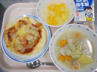 10月3日 手作りピザパン ボリート フルーツジュレ 牛乳