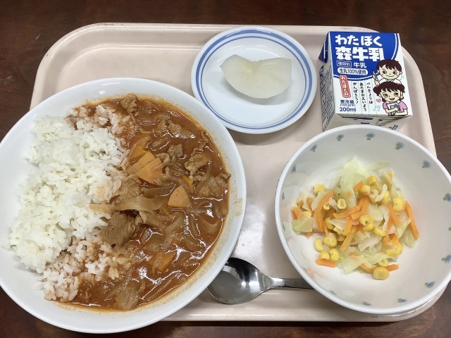 キャベツとコーンのサラダは、キャベツとにんじんを千切りにして食べやすくしました🥗