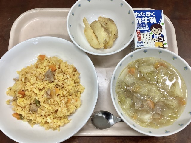 野菜スープは、玉ねぎやキャベツなどの野菜に、豚肉を入れることで更にうま味をプラスしておいしく仕上げました🥣