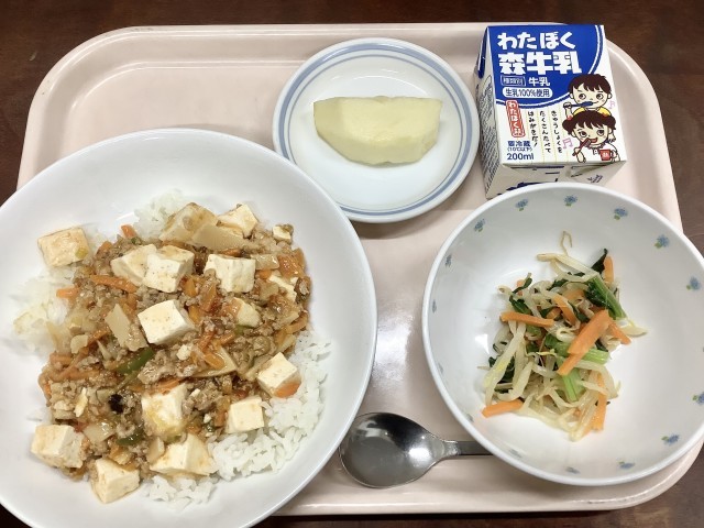 今日の給食は、西湖豆腐(シーホードウフ)です😋