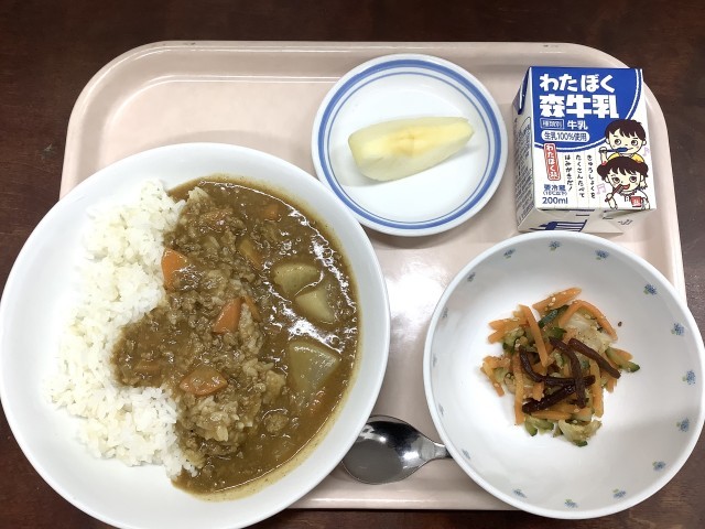 今日の給食は、大根が主役の大根カレーライスです😋