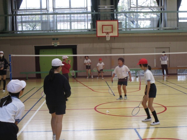 バドミントンクラブでは、チームでラリーの練習をしたり、ゲームに取り組んだりしています。