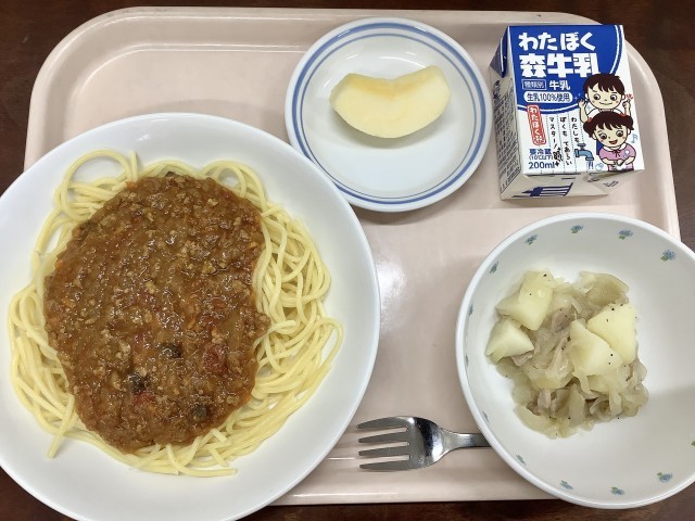 今日の給食は、スパゲッティです🍝