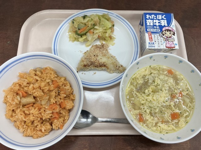 今日の給食は、チキンライスです🐔