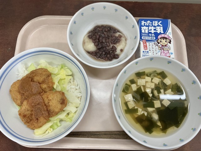 今日の給食は、みそカツ丼です🐷