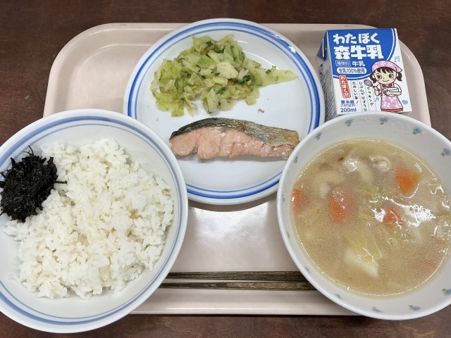 当時は、おにぎり、塩鮭、菜の漬物が子どもたちに給食として出されていました🐟