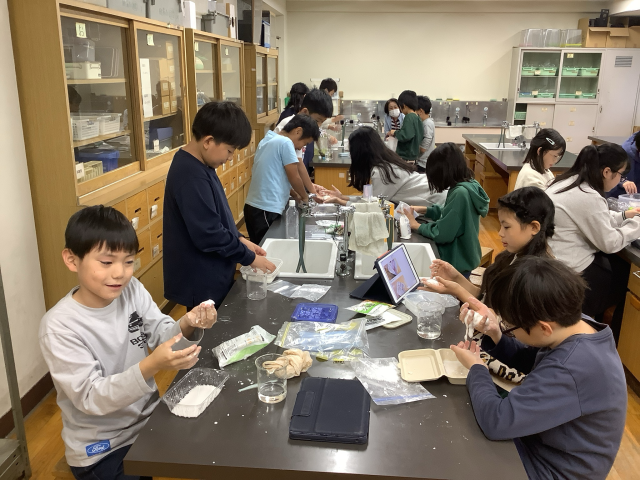 科学クラブ 公開日 2026/02/12 更新日 2026/02/12 学校生活 科学クラブでは、科学の原理や性質に触れることを目的にグループごとに実験活動に取り組んでいます。これまでに片栗粉粘土、スライム、バスボムなどに挑戦しました。科学の不思議な力を生かし、協力し合いながら完成させました。 いいね(0)