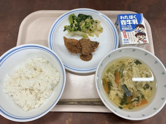 かき玉汁は、にんじんなどの野菜とふわふわの卵が、かつお出汁によく合い、寒い日にぴったりの汁物となりました☺️