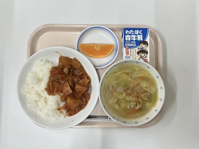 令和8年2月24日 公開日 2026/03/02 更新日 2026/03/02 今日の給食 ⭐︎今日の献立⭐︎・ポヨ・サルタード・キャベツスープ・果物(せとか)・牛乳⭐︎食材の産地紹介⭐︎豚肉 (秋田)鶏肉 (鹿児島)鶏がら (岩手)ベーコン (千葉・群馬)にんにく (青森)セロリー (愛知)玉ねぎ (北海道)にんじん (千葉) ピーマン (宮崎)赤ピーマン (宮崎)じゃがいも (北海道)キャベツ (愛知)パセリ (千葉)せとか (愛媛) いいね(0)