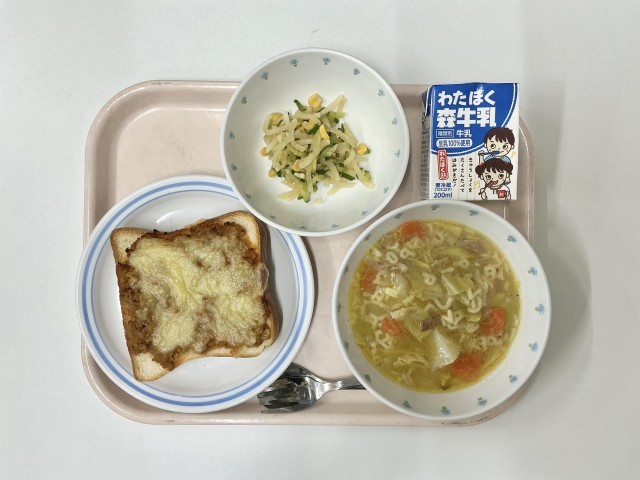 令和8年2月27日 公開日 2026/03/02 更新日 2026/03/02 今日の給食 ⭐︎今日の献立⭐︎・カレーミートトースト・大根サラダ・ABCスープ・牛乳⭐︎食材の産地紹介⭐︎鶏肉 (鹿児島)豚肉 (秋田)鶏がら (岩手)ベーコン (千葉・群馬)豆腐 (愛知・佐賀)こんにゃく (群馬)生姜 (高知)にんにく (青森)長ねぎ (千葉)にんじん (千葉) 大根 (神奈川)小松菜 (東京)長ねぎ (千葉)ごぼう (青森) いいね(0)