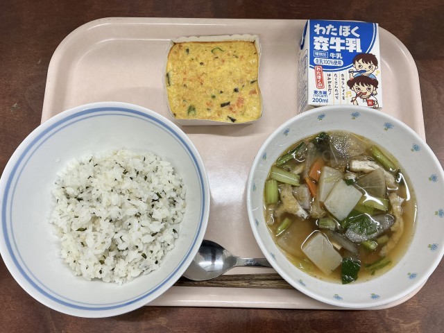 今日の給食は、人気のわかめご飯です🍚