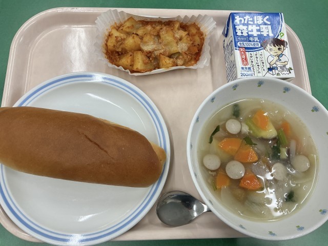 令和8年4月13日 公開日 2026/04/20 更新日 2026/04/20 今日の給食 ⭐︎今日の献立⭐︎・ミルクパン・じゃがいものグラタン・ポトフ1年生が給食開始となりました。比較的食べ馴染みのあるメニューにし、1年生でも食べられるようにしました。 いいね(0)