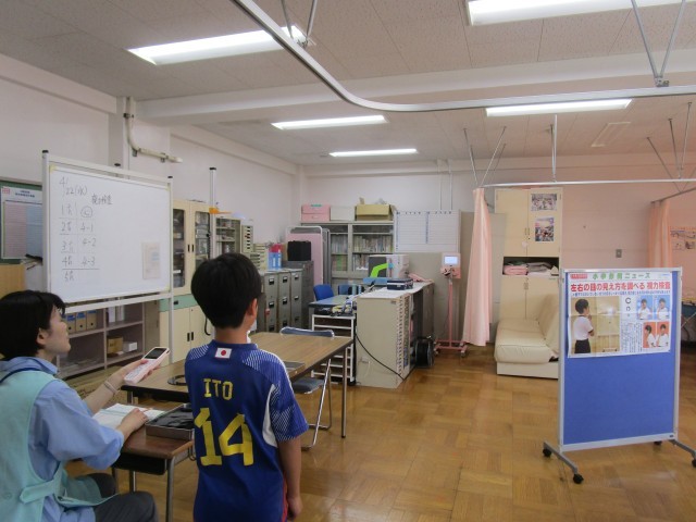 春の定期健康診断(視力検査)を行いました。新学期が始まり、保健室では様々な健康診断がスタートしています。健康診断は、自分の体の状態を知る大切な機会です。「自分の健康は自分で守る」という意識をもてるよう、今後も保健指導を行っていきます。