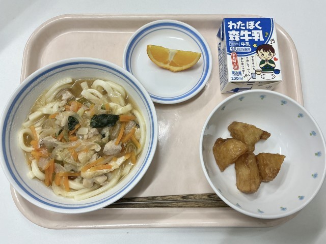 令和8年4月23日 公開日 2026/04/24 更新日 2026/04/24 今日の給食 ⭐︎今日の献立⭐︎・鶏南蛮うどん・みそポテト・果物(ネーブル)うどんと埼玉県の郷土料理のみそポテト、果物は和歌山県産のネーブルです。 いいね(0)