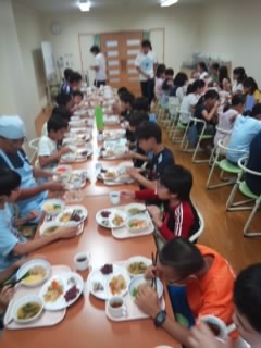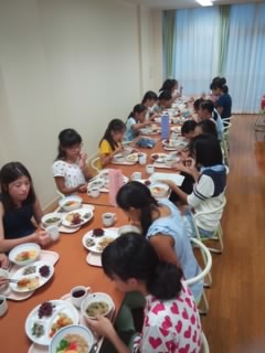 夕食です。みな元気いっぱいです。