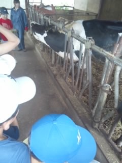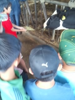 酪農体験をしています。