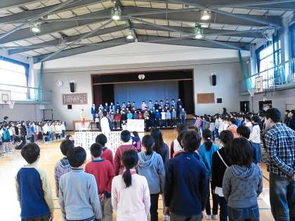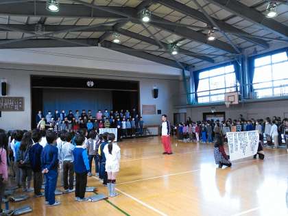 今日の音楽集会は、卒業おめでとう集会の練習をしました。