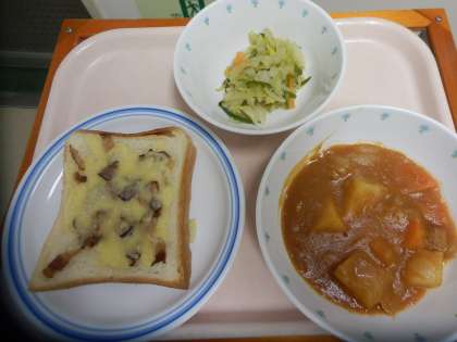 3月7日 ベーコンチーズトースト ポークシチュー 野菜ソテー 牛乳