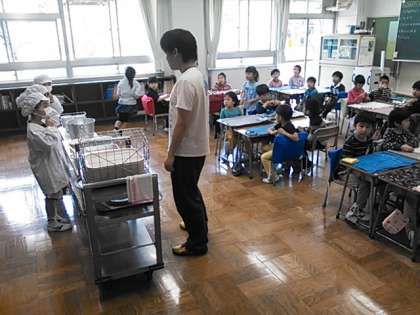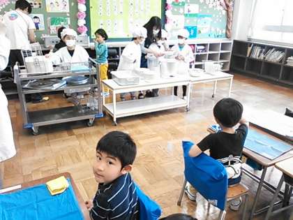 初めての給食は、カレーライスです。