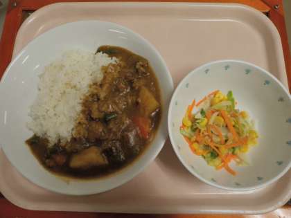 4月10日 カレーライス キャベツとコーンのサラダ 牛乳
