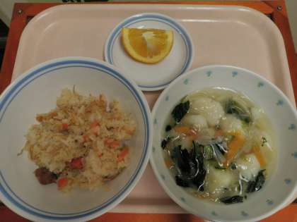 4月28日 こぎつねごはん いかだんご汁 サンフルーツ 牛乳 公開日 2014/04/30 更新日 2014/04/30 今日の給食 《こんだて》 ★こぎつねごはん ★いかだんご汁 ★サンフルーツ ★牛乳 《食材の産地》 鶏肉(鹿児島)、長ねぎ(深谷)、やまといも(千葉)、にんじん(徳島)、大根(千葉)、小松菜(埼玉)、サンフルーツ(愛媛) いいね(0)