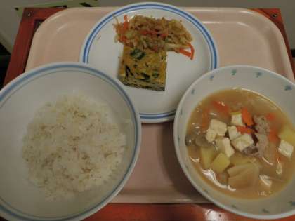 6月9日 ごはん ひじき入り卵焼き ごま和え 豚汁 牛乳
