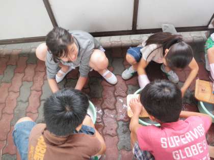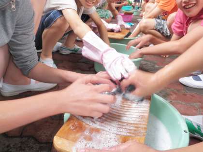 家庭科 洗濯の実習をしました。くつ下を洗濯板やブラシを使って丁寧に洗いました。