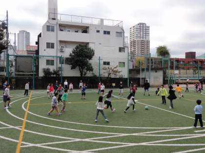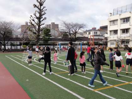 今日の朝の活動は、異学年による縦割り班活動です。校庭では、各班が考えた遊びを6年生中心に行っていました。「氷おに」「高おに」「ドッジボール」に「長縄跳び」等々。ドッチボールでは、高学年の子が、1年生に「ボールを投げていいよ。」と優しくしている場面が見られました。年齢の違いを受け止め、年下の子に優しく接すること、年上の人に尊敬を体験させるとてもいい取り組みです。