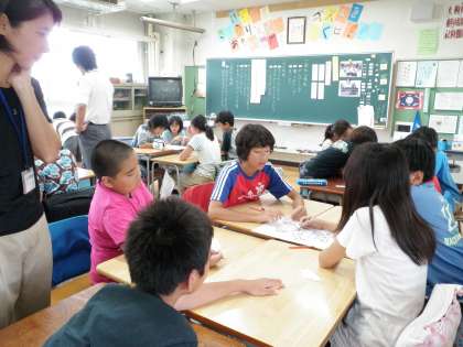資料を読んだあと、話し合い、その後、実際にグループワークを行って、協力することについて考えました。