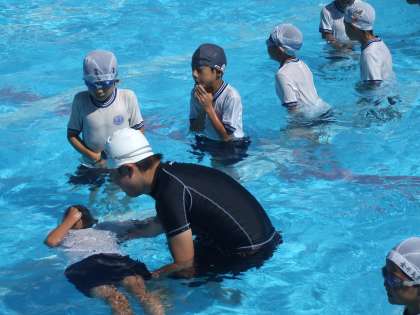 久しぶりに天気に恵まれた今日、1年生から5年生は「着衣泳」をしました。