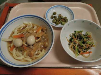 9月24日 五目うどん ごま和え のり塩大豆 牛乳
