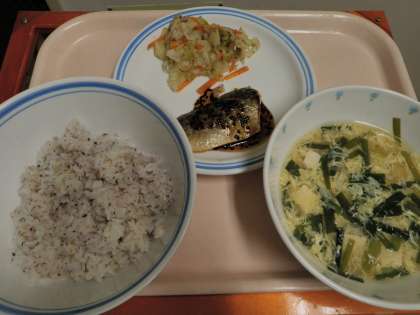 8月29日 ゆかりごはん あじのごまだれ焼き キャベツの土佐酢和え かき玉汁 牛乳